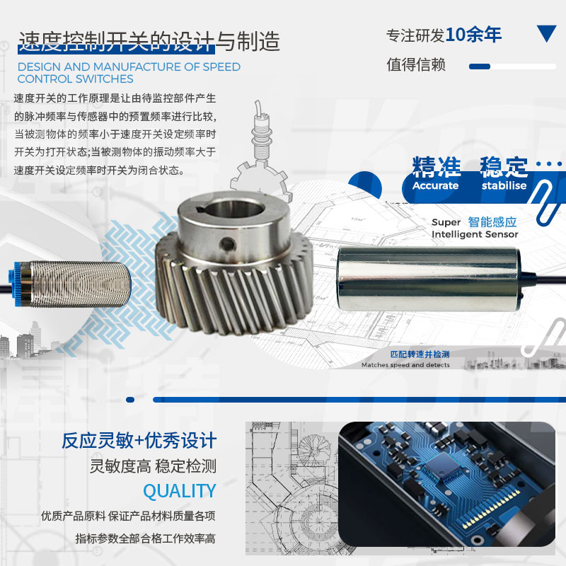 凱基特速度控制開關產品主要針對客戶現場的實際需求而研制,產品用電范圍廣泛。產品對電機及機械傳動裝置常出現的堵轉、卡轉、超載、慢轉,皮帶打滑、傳動鏈(帶)脫落、傳動軸斷裂等電氣及工藝出現的故障均能有效及時的處理。可起到保障生產,維護設備的作用。
