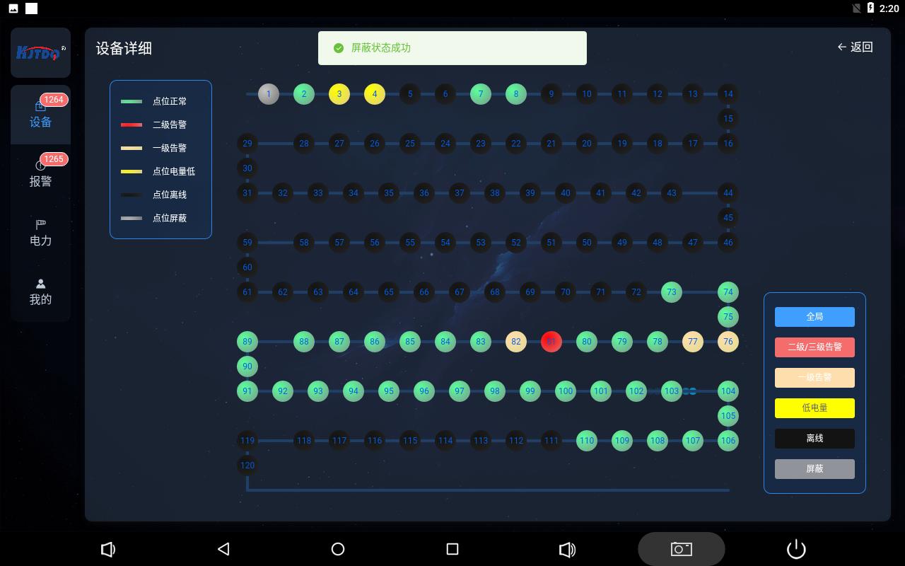 點(diǎn)擊圓圈彈出對(duì)應(yīng)保護(hù)裝置的詳細(xì)信息,并且可以設(shè)置保護(hù)裝置的屏蔽狀態(tài),手動(dòng)解除二級(jí)告警狀態(tài)
