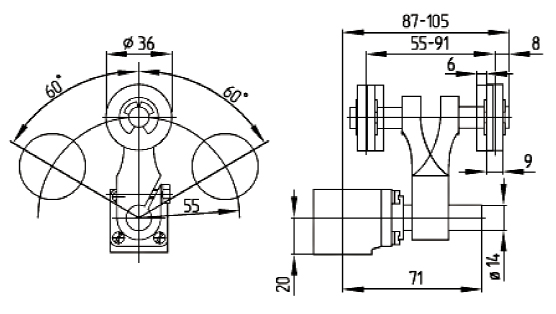 • ● :對耐溫型產品,滾輪可以安裝在軸兩個不同位置上